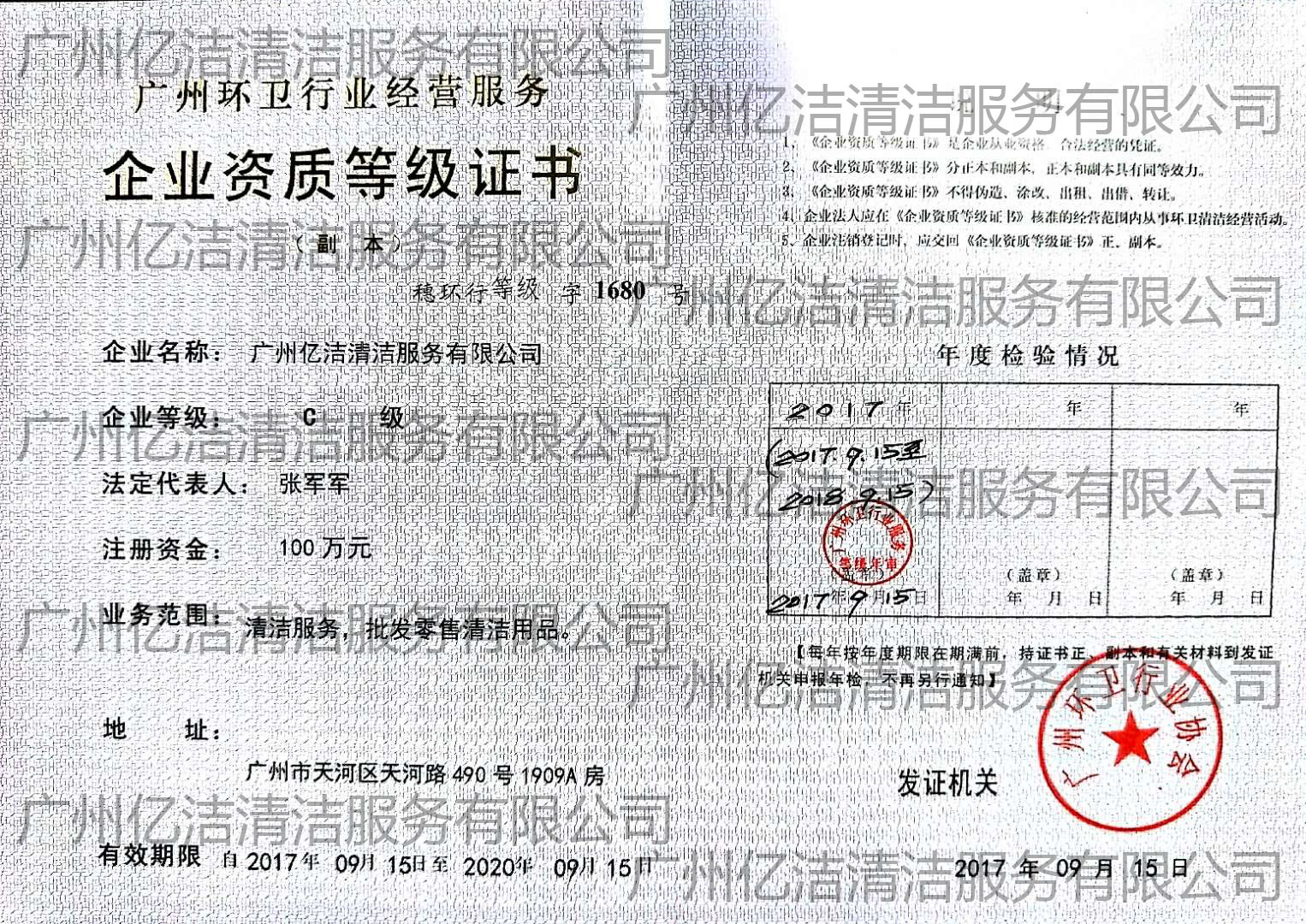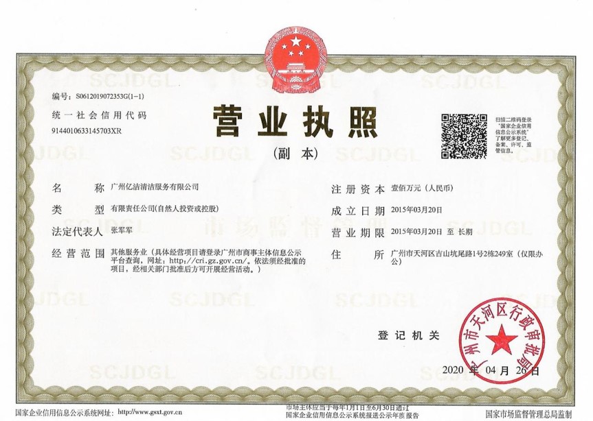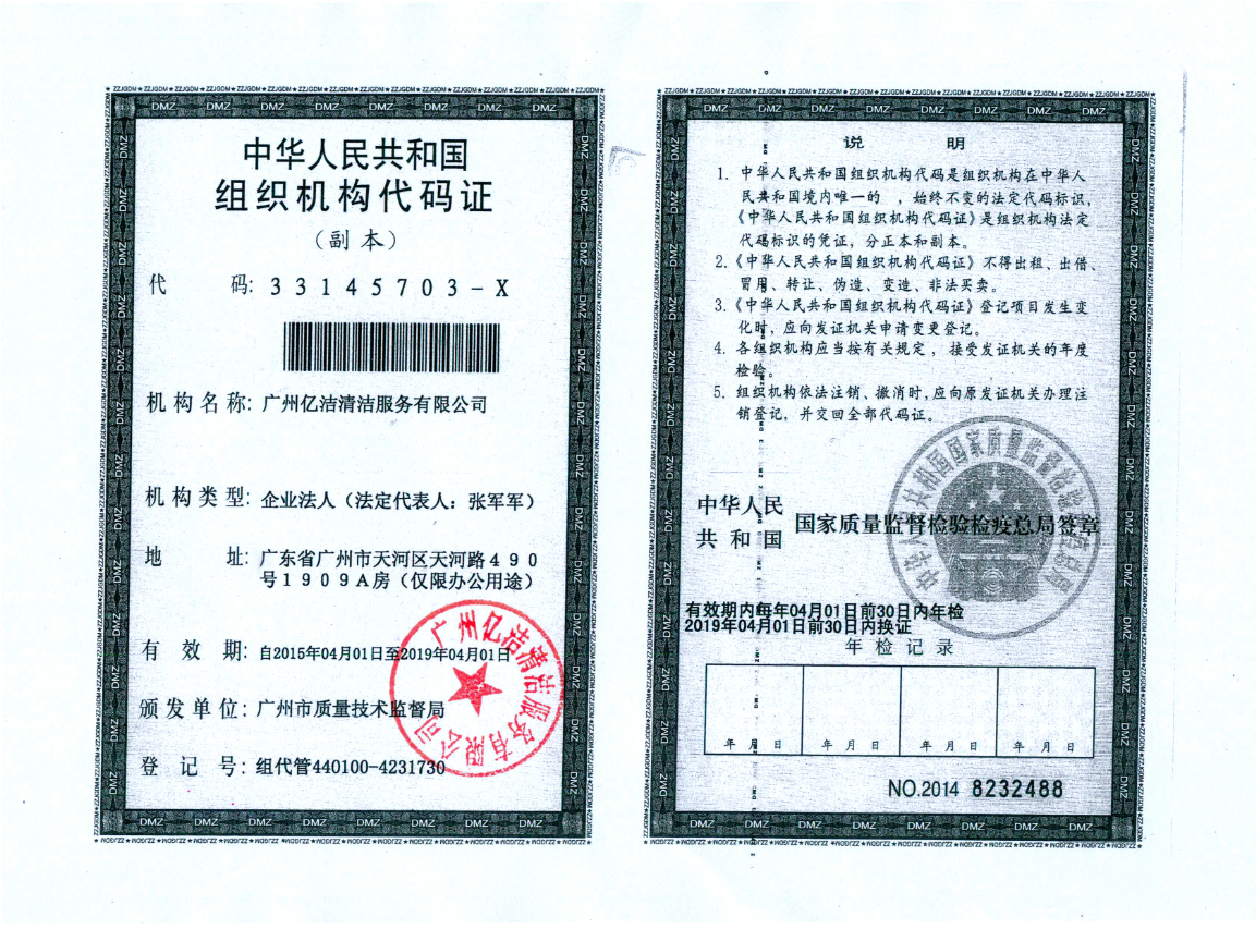 廣州億潔清潔服務有限公司是經(jīng)廣州市工商行政管理局批準成立的(注冊資本:100萬元人民幣)。具有獨立法人資質(zhì)。公司成立2015年,公司具備完善的管理體系和高素質(zhì)管理隊伍,擁有特種技術(shù)人員33名,保潔服務人員上萬名,覆蓋廣州市,能及時調(diào)配并快速投入高效運行。我們的每個員工都經(jīng)過公司的嚴格篩選,嚴格培訓,定期培訓后持證上崗以保證服務品質(zhì),保障客戶的權(quán)利,利益,形象等不受損失。 廣州億潔清潔公司是一家設備齊全,技術(shù)強大的綜合型清潔服務公司,為客戶提供完善服務尊定了堅定的基礎。 司于2010年全面推行了ISO9001質(zhì)量管理體系認證和ISO14001國際環(huán)保體系認證。先后獲得廣州高層建筑外墻清洗維修作業(yè)【安全資質(zhì)證書】、【廣州環(huán)衛(wèi)企業(yè)等級證書C級資質(zhì)】、廣州疾控中心頒發(fā)的【四害消殺服務資質(zhì)證】、【空氣治理A級資質(zhì)】、中國石材協(xié)會頒發(fā)的【石材資質(zhì)B級資質(zhì)】等。 廣州億潔清潔服務有限公司致力于打造專業(yè)、實惠、靠譜的保潔服務公司,把專業(yè)的事情交給專業(yè)的我們,您放心! 億潔清潔服務項目: 廣州保潔服務:新建樓宇、別墅、酒店、醫(yī)院、辦公樓、賓館、企事業(yè)單位廠房竣工后開荒及裝修后精細保潔.工程保潔服務。 廣州物業(yè)托管:為廣州市各大企事業(yè)單位、賓館、政府機關、小區(qū)物業(yè)、酒店及廠房提供專業(yè)化保潔、園林、設施維護等管理服務。 廣州高空作業(yè):高空玻璃幕...[詳情]